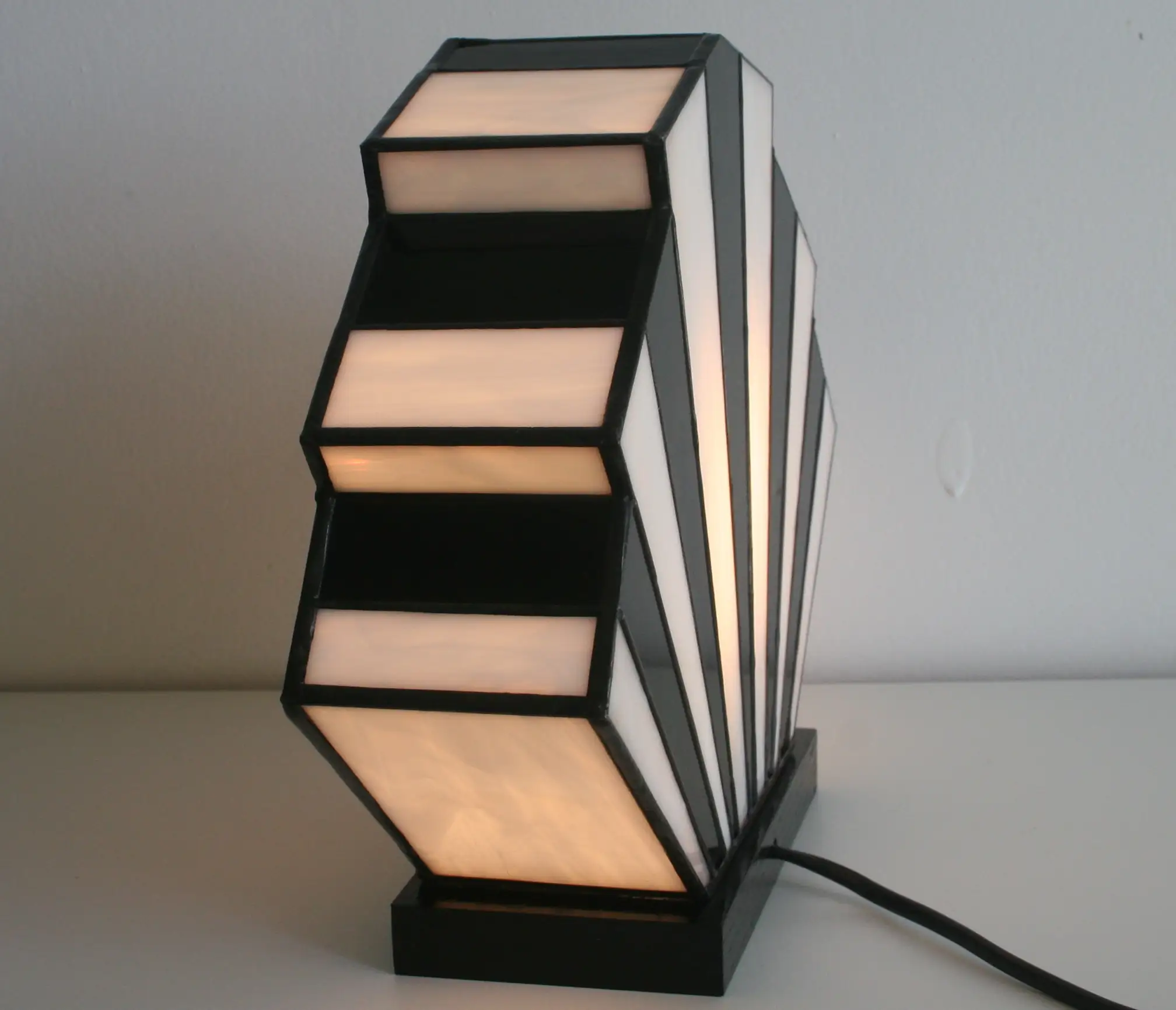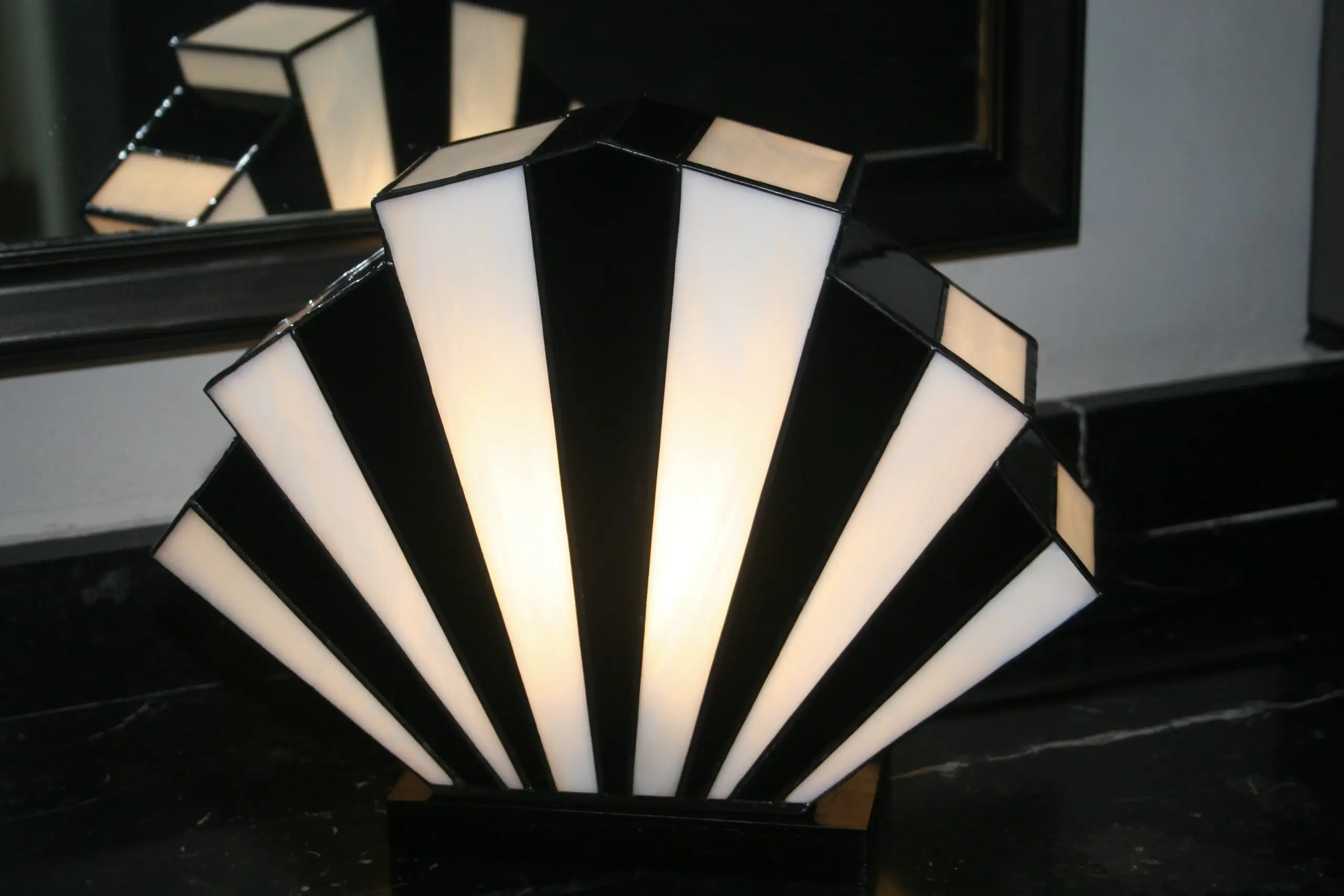 Lampe Art Déco Vitrail Tiffany 1928 Sunburst Black and White