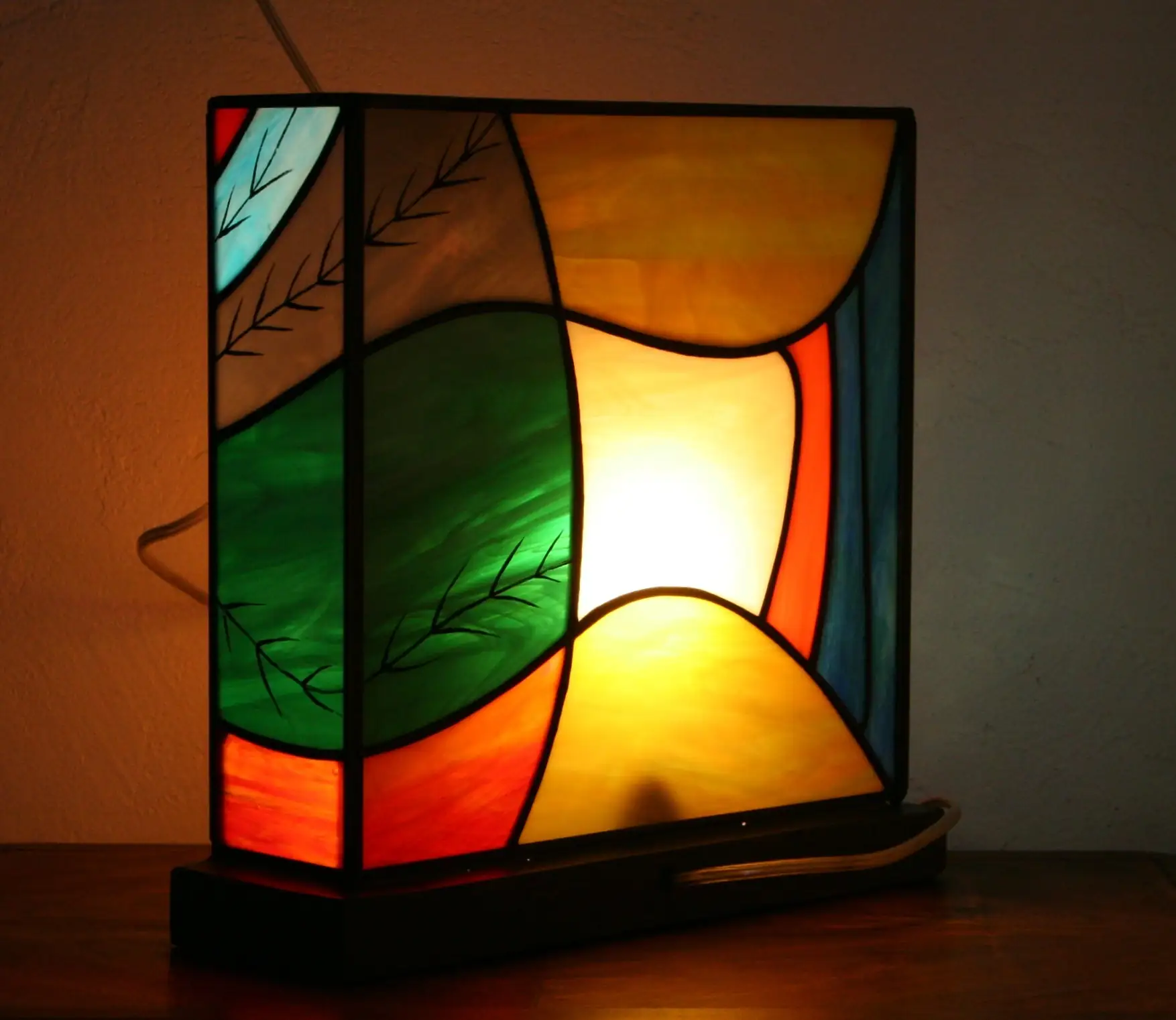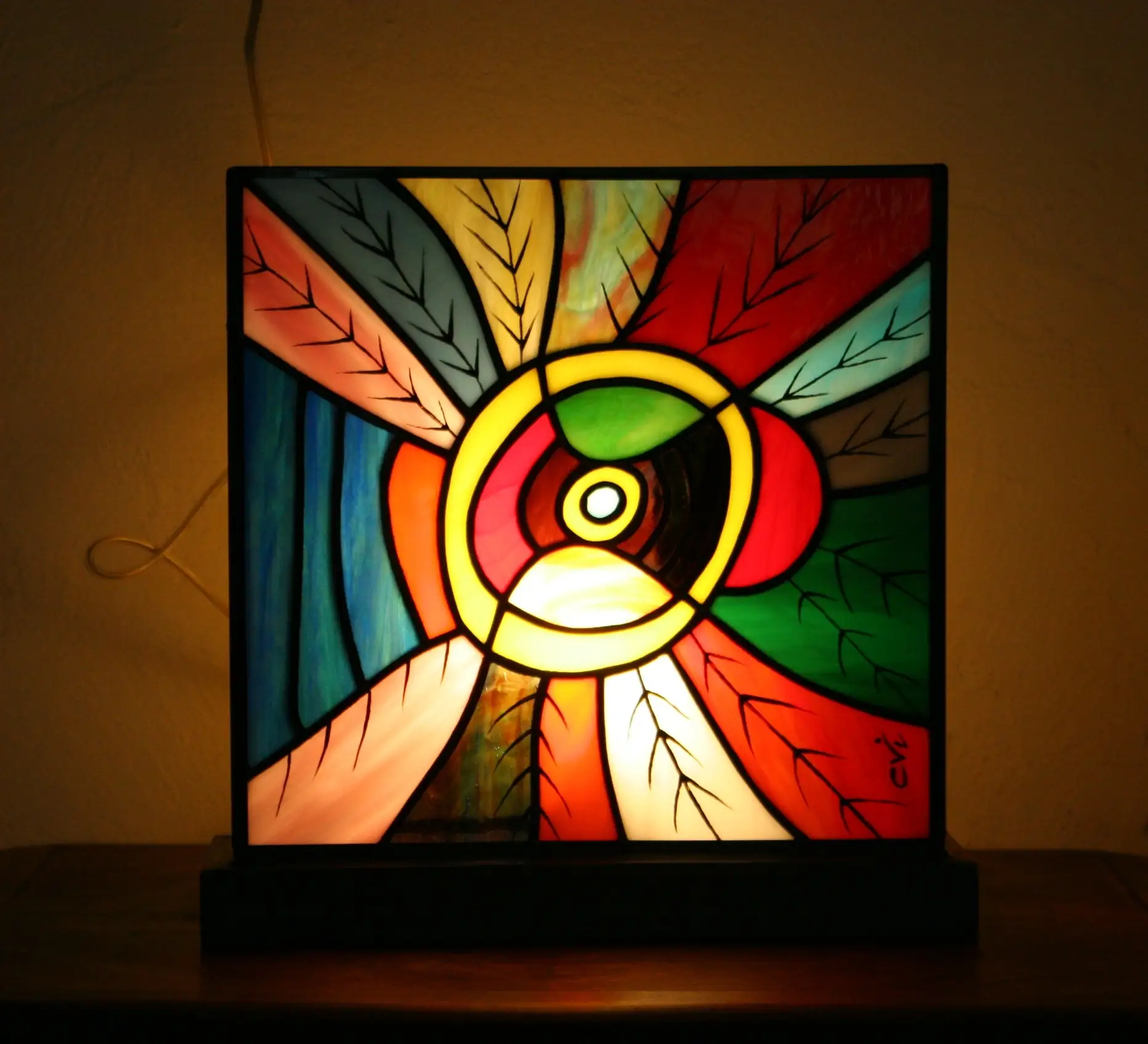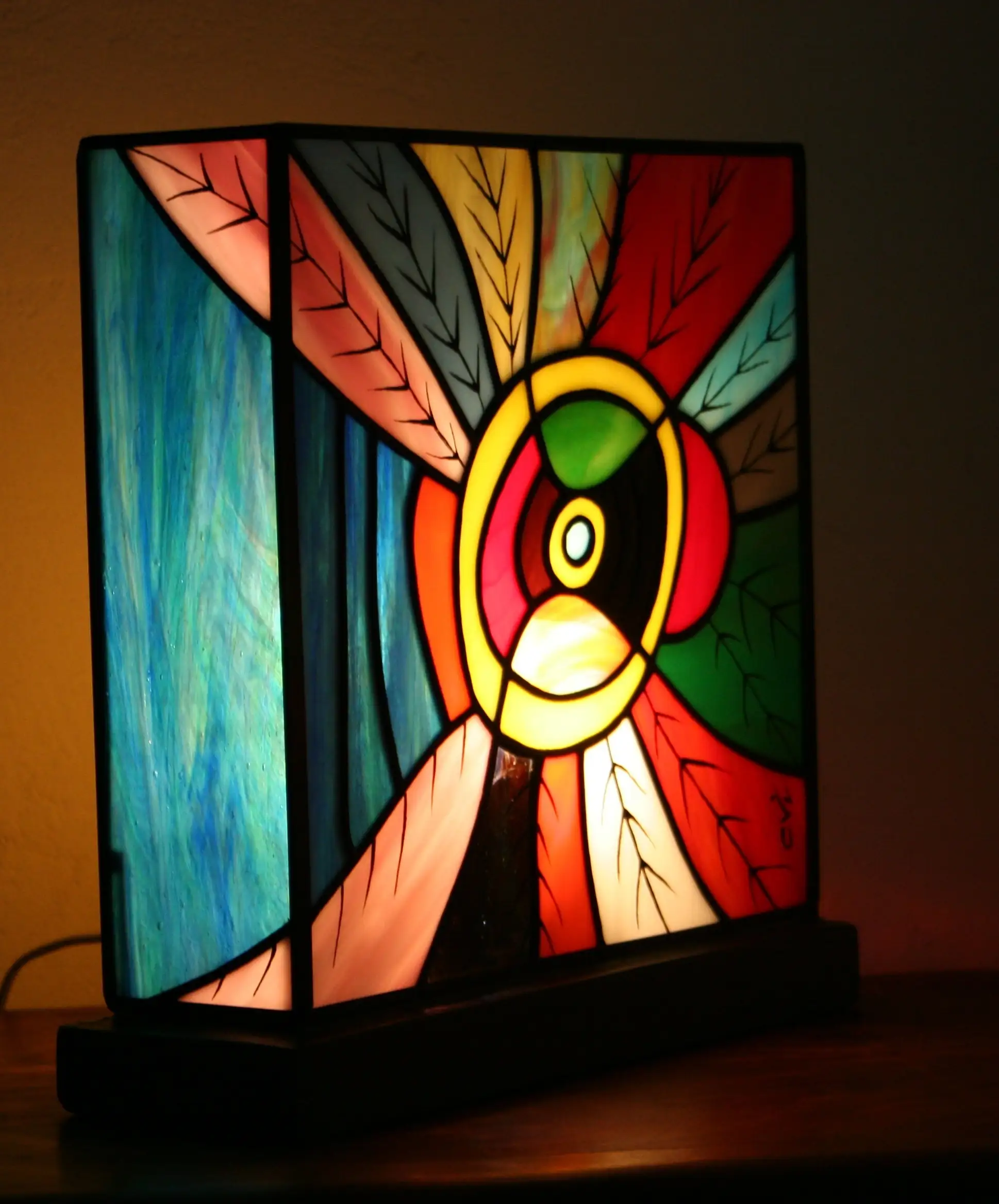 En tant qu’artisan d’art, artiste-verrier, je façonne chaque lampe de table en vitrail Tiffany comme une œuvre lumineuse unique. Cette pièce aux couleurs tropicales est pensée pour transformer votre intérieur en un espace vibrant, chaleureux et profondément artistique.