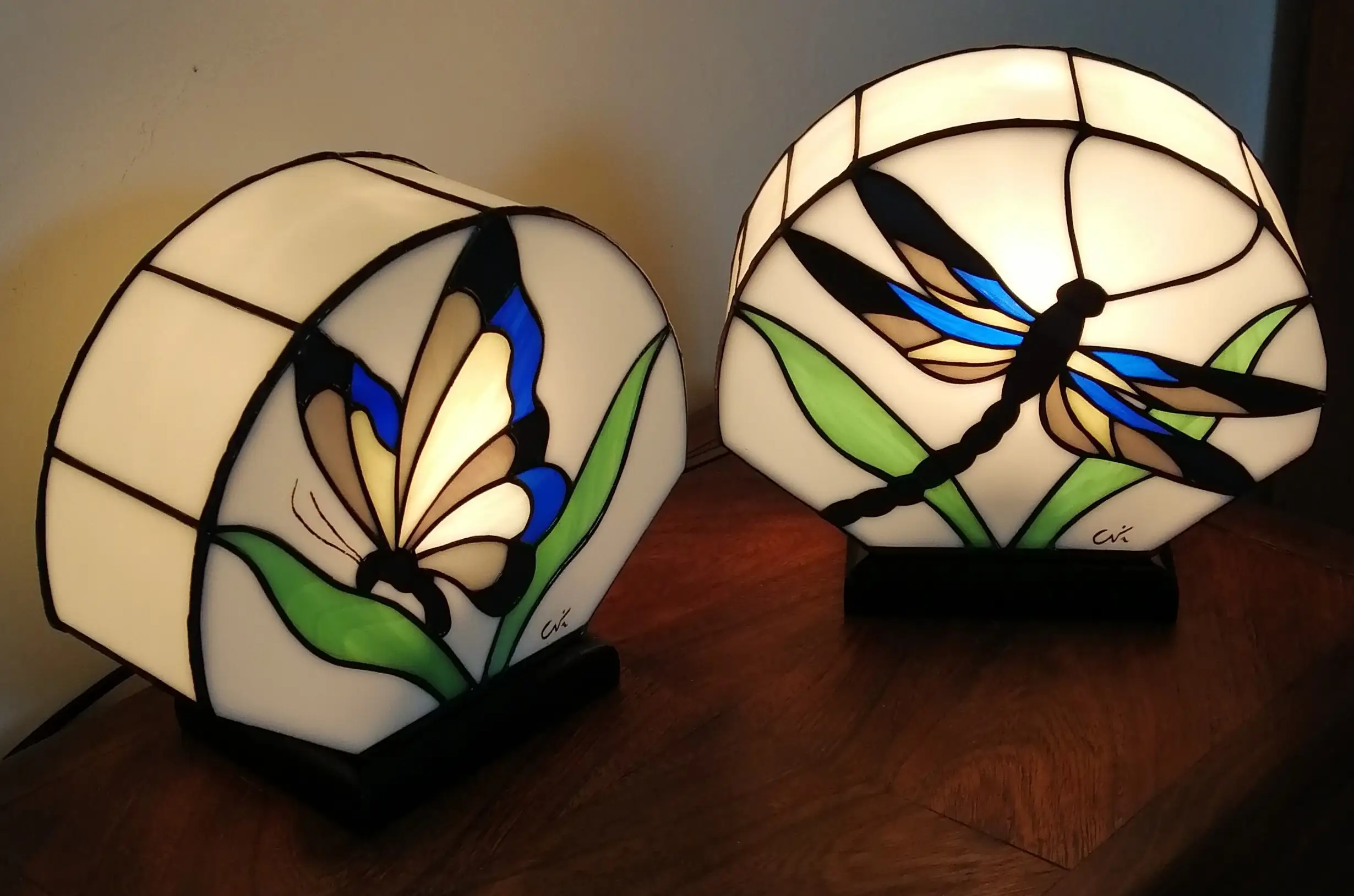 Lampes Art Nouveau Butterfly/Dragonfly en Vitrail Tiffany